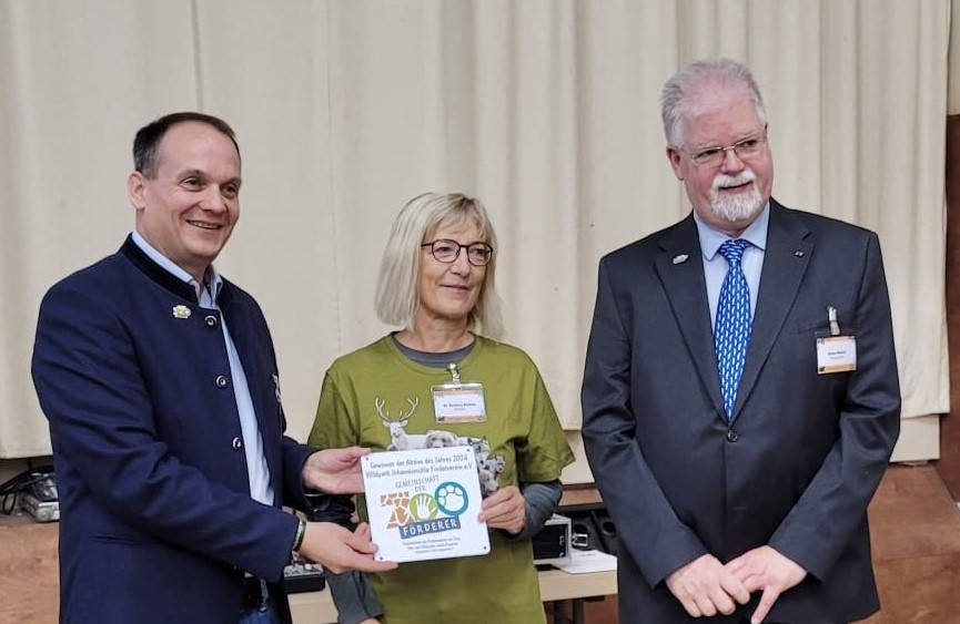 Der diesjährige Preisträger, der Förderverein Wildpark Johannismühle e.V., überzeugte die Jury. Die Preisverleihung fand im Rahmen der Mitgliederversammlung in Chemnitz statt. In der Laudatio würdigte Vorstandsmitglied Florian Dittert das Projekt als herausragendes Beispiel für gelebten Naturschutz und gemeinschaftliches Engagement. Anschließend überreichte er mit Präsident Bruno Hensel die Auszeichnung „Aktion des Jahres 2025“ an Frau Dr. Barbara Stubbe, die Vorsitzende des Fördervereins.
